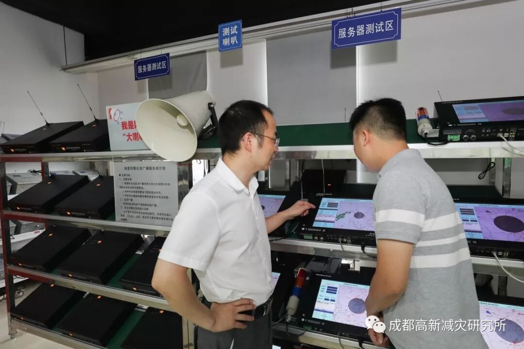 王暾博士带小记者们参观了“网红大喇叭”,讲述了在长宁6级地震时,“网红大喇叭”是如何给民众发出地震预警,如何提前几秒-几十秒给不同区域的用户预警。