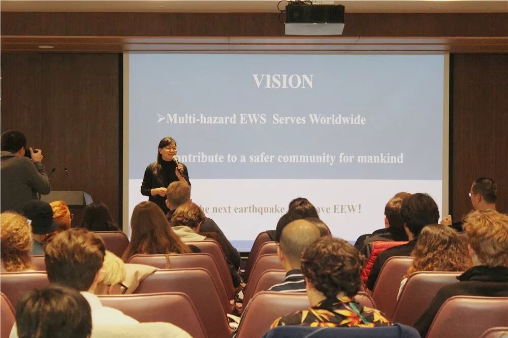 当天上午,在中国-欧洲中心举行的企业讲座上,减灾所所长助理罗德卉女士为燕京学堂的同学们,作题为“Innovation Drives the Development of EEW(创新驱动全球领先的地震预警技术) ”演讲,收到热烈反响。
