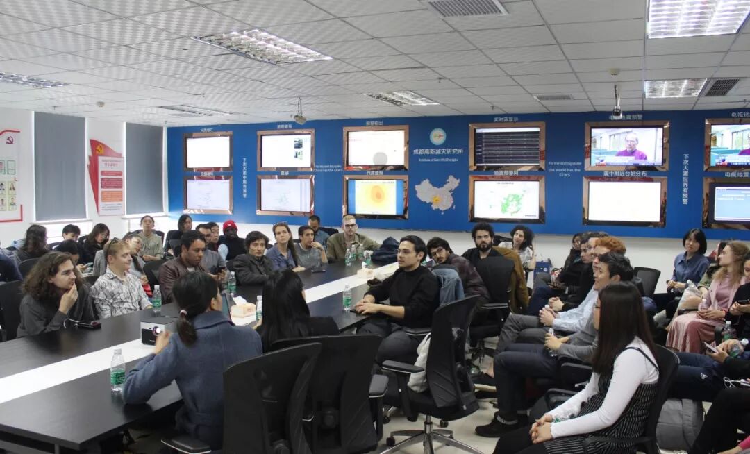 11月14日,参加北京大学燕京学堂2019年川渝实地调研课程的师生一行,来到成都高新减灾研究所参观。