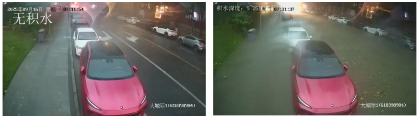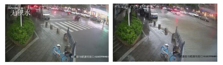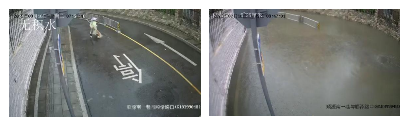 1)四川省成都市郫都区顺源南一巷与顺泽路口内涝预警前后对比图