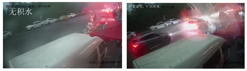 (2)四川省成都市郫都区天润路合顺路口内涝预警前后对比图