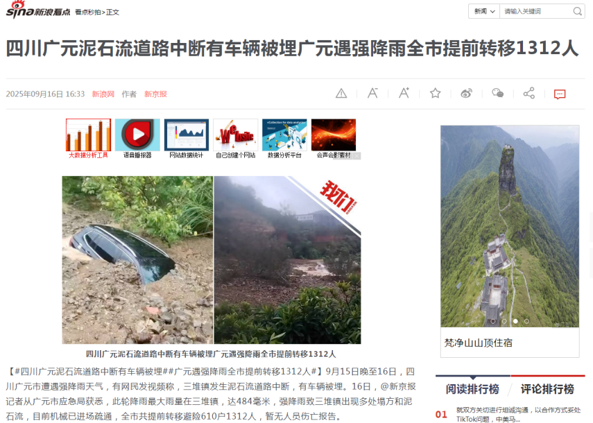 6  916日四川省广元市利州区三堆镇山洪泥石流新闻截图