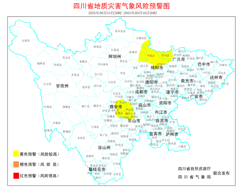 四川省气象台9151540分发布暴雨蓝色预警。根据图示,广元市利州区三堆镇虽在此次暴雨蓝色预警范围内,但处于小到中雨区域。四川省地质灾害防治指挥部办公室91517时发布地质灾害气象风险预警图,广元市利州区三堆镇未在图示预警范围内。广元市气象台9151735分发布天气预报。根据图示,利州区三堆镇处于小到中雨区域。