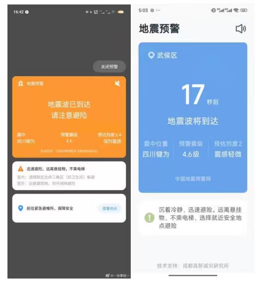 5、中国首个手机地震监测预警网同步成功预警乐山地震,持续稳定运行。