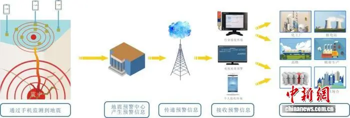 手机地震监测预警网原理。成都高新减灾研究所供图
