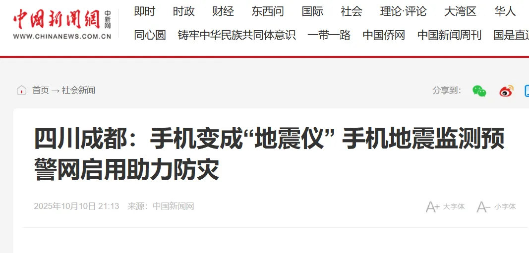 据介绍,2019年,小米集团与减灾所合作实现了地震预警接收功能到手机、电视操作系统。随后多家主流国产手机厂商和电视陆续在操作系统中内置了地震预警功能。2021年6月,手机地震监测预警网上线,支持在手机端开启地震监测功能,开启了手机地震预警技术试验。