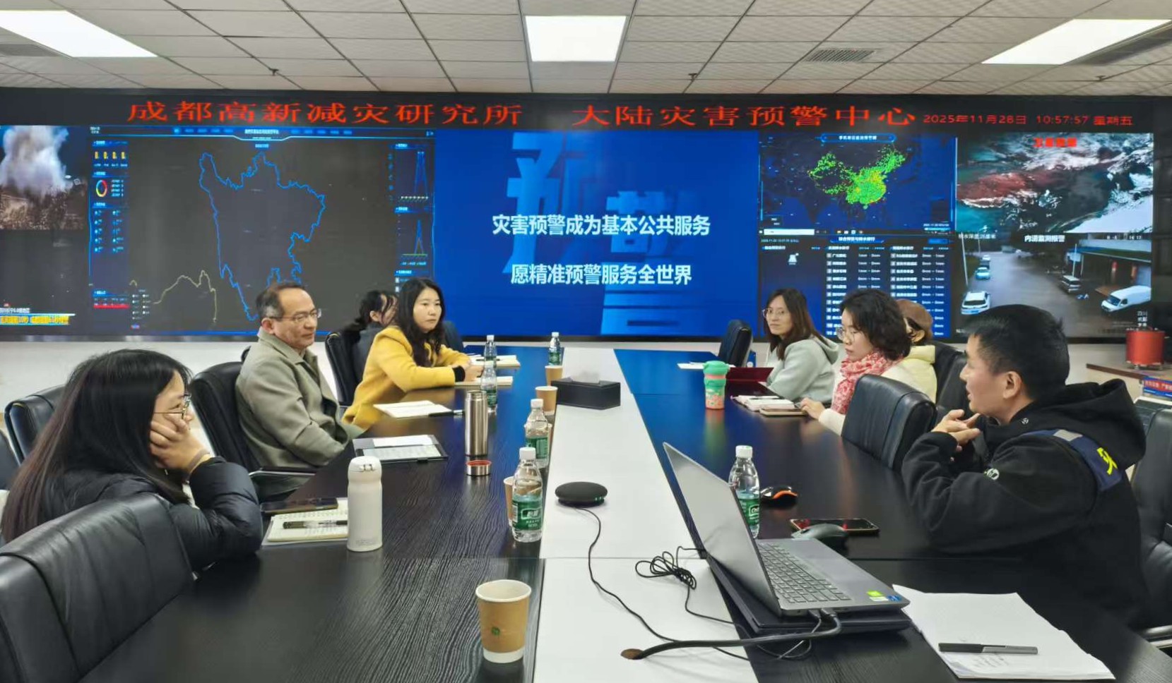 2025年11月28日,一年一度的四川省委党校MPA班学员到成都高新减灾研究所参观学习,就“多灾种预警、公共安全管理”课题进行深入交流和探讨。